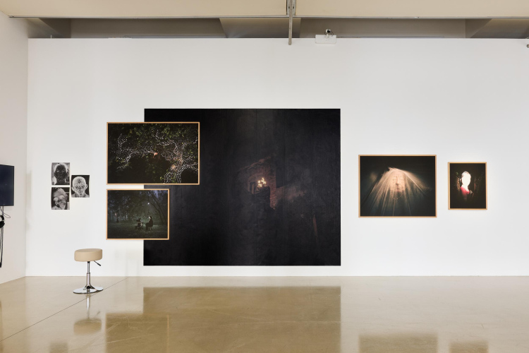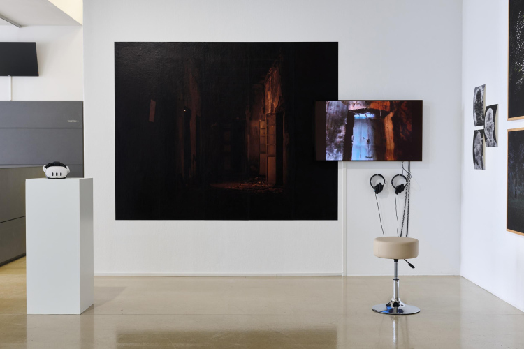 'A Discreet exit through Darkness' contents a non-animated feature length VR/360 film and Archival Prints.